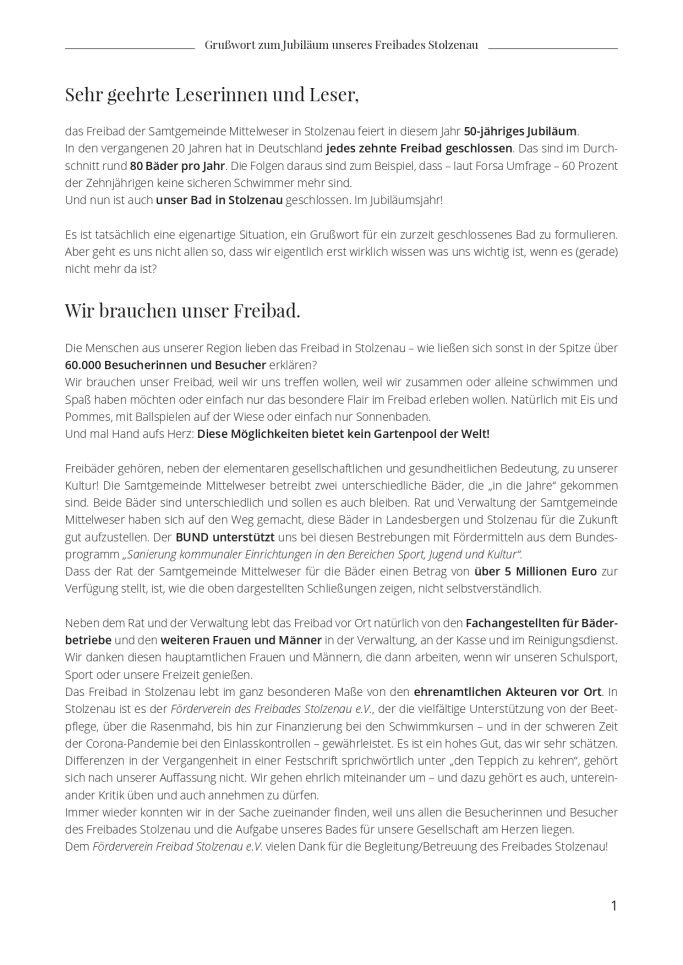 Chronik des Freibades Stolzenau