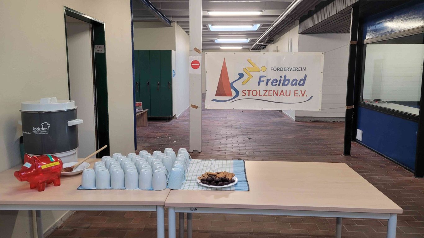 Es war alles perfekt für die Besichtigung von Rebecca Zülow und Lena Knapikowski mit Ihrem Team vorbereitet. Die Außenanlagenwaren so gesichert, dass eine Baustellenbesichtigung für mobile Menschen möglich war. Die Planer der Freibadsanierung Schütze und Gansloser sowie die verantwortlichen Mitarbeiter der Samtgemeinde Mittelweser Arnd Wiebe und Martin Kämper haben eine Planübersicht im Bereich der Sozialräume des Freibades vorbereitet. Pünktlich um 10 Uhr kamen die ersten 20-30 Besucher*innen. Sie wurden in Gruppen aufgeteilt, die Pläne erklärt und es gab eine Führung des Freibadgeländes mit Erklärungen. Fragen konnten gestellt werden und wurden beantwortet. Der Förderverein hat alkoholfreien Punsch angeboten und nach einem Gläschen verabschiedeten sich die ersten Gäste. Immer wieder kamen neue interessierte Bürger*innen, die sich von dem Fortschritt der Sanierungsarbeiten überzeugen wollten. Geschätzt waren es insgesamt ca. 150 Personen. Alle waren zufrieden mit der Veranstaltung, die gegen 13 Uhr beendet war.